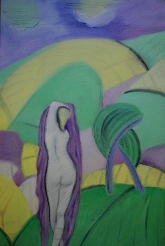 Akt in Traumlandschaft, 2001, Öl auf Leinwand, 105 x 70 cm