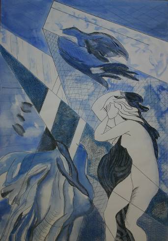 Euridike, 2009, Tusche laviert auf Papier, 50 x 35 cm