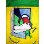Akt hinter Vorhang, 2000, Gouache auf Karton, 74 x 54 cm