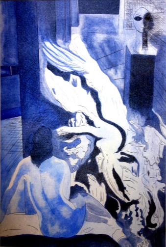 Leda mit dem Schwan, 2002, Tusche laviert auf Papier, 44 x 29 cm