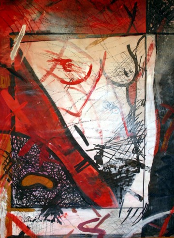 Tryptichon - Flucht, Mitte, 2011, Öl auf Karton, 80 x 60 cm