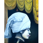Akt hinter Vorhang, 2000, Öl auf Leinwand, 80 x 60 cm
