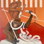 Dinner for monkeys, 2020, Öl auf Leinwand, 150 x 100 cm