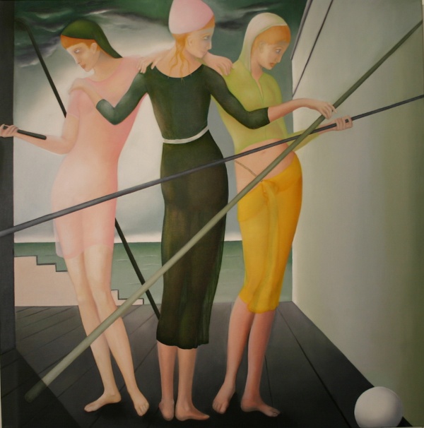 Billard, 2011, Öl auf Leinwand, 100 x 100 cm