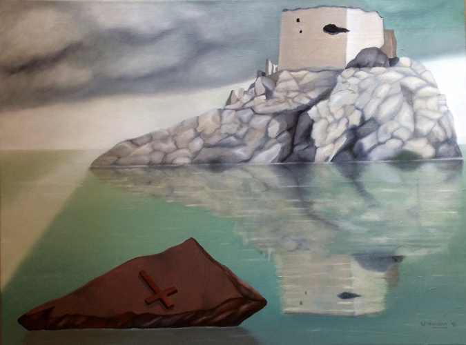 Wasserlandschaft mit Kreuz, 2016, Öl auf Leinwand, 60 x 80 cm