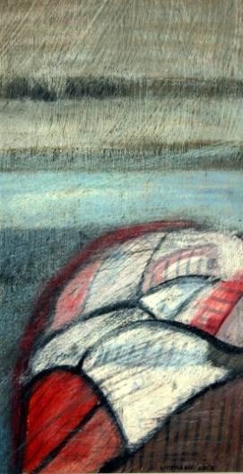 Roter Strand, 2005, Öl auf Karton, 18 x 34 c