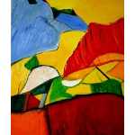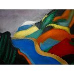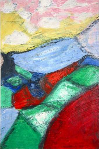 Bunte Hügellandschaft, 2005, Öl auf Karton, 14 x 29 cm