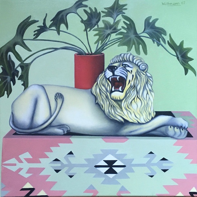 Stillleben mit Porzelanlöwen, 2017, Öl auf Leinwand, 40 x 40cm