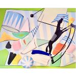 Kopie nach Peter Schermuly Kelim, Kugel, blaue Schale, 2000, Guache auf Karton, 100 x 70 cm