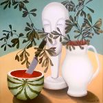 Stillleben mit Melone, 2020, Öl auf Leinwand, 50 x 50cm