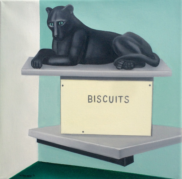 Biscuits und schwarzer Panther, 2016, Öl auf Leinwand, 30 x 30 cm