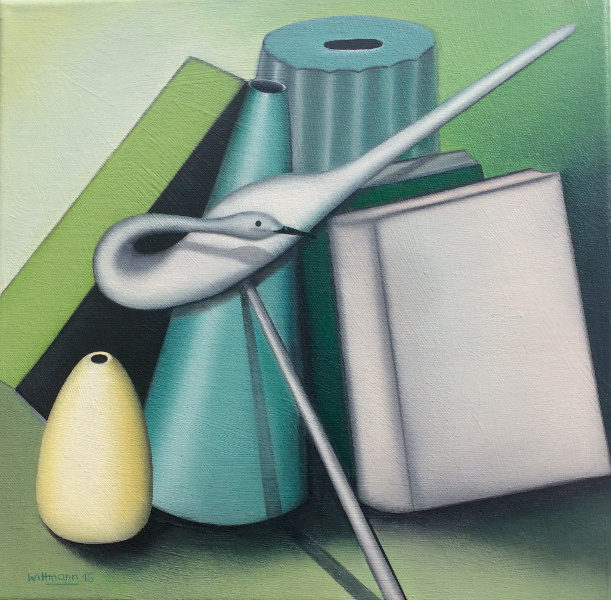Stillleben mit Vase und Holzschwan, 2016, Öl auf Leinwand, 50 x 60 cm