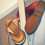 Swinging boots, 2014, Öl auf Karton, 82 x 56 cm
