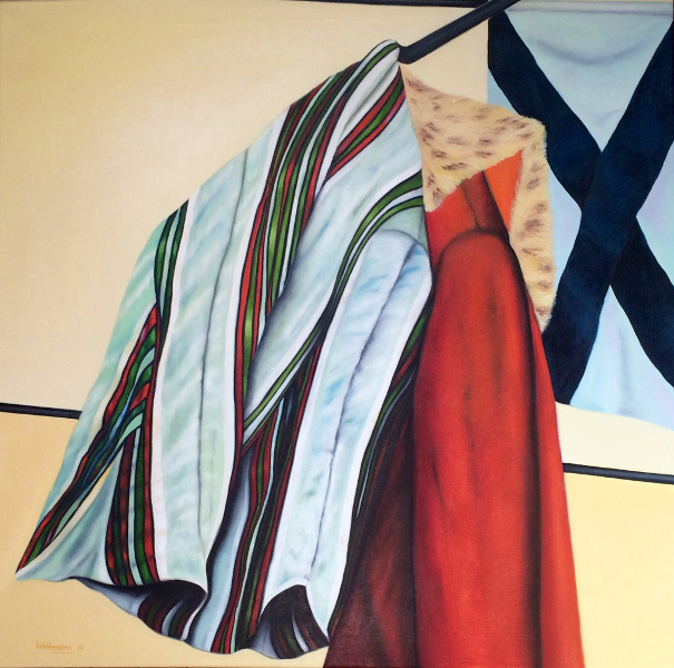 Stillleben mit rotem Mantel, 2014, Öl auf Leinwand, 70 x 70 cm