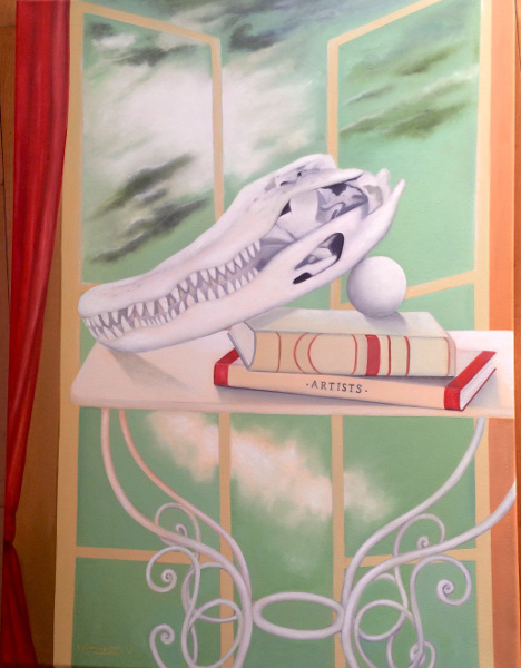 Stillleben mit Totenkopf, 2009, Öl auf Karton, 50 x 34 cm