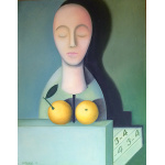 Stillleben mit Grapefruits und Perückenständer, 2012, Öl auf Leinwand, 66 x 52 cm