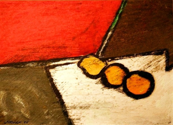 Stillleben mit Zitronen, 2005, Öl auf Karton, 12 x 17 cm