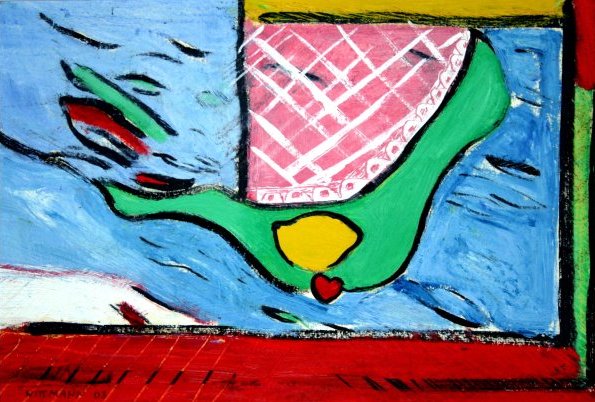 Stillleben mit grüner Schale und Zitrone, 2003, Öl auf Karton, 18 x 27 cm