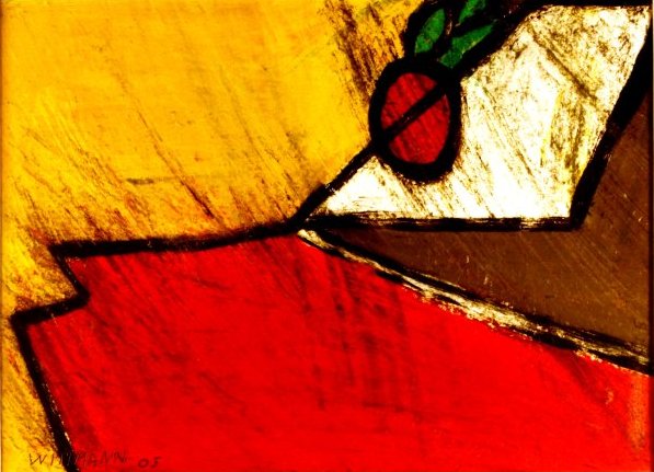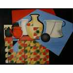 Stillleben in rot und blau, 2006, Öl auf Karton, 60 x 50 cm