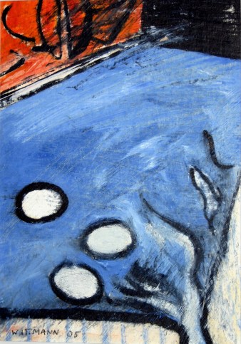 Stillleben mit drei Eiern, 2005, Öl auf Karton, 17 x 12 cm