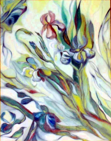 Blumenarrangement mit Iris, 1999, Öl auf Leinwand, 60 x 45 cm