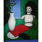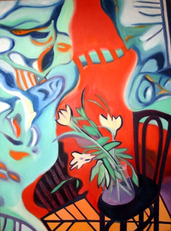 Stillleben mit Sessel und Blumenvase, 2001, Öl auf Leinwand, 80 x 60 cm