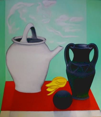 Stillleben mit Krügen und Kugel, 2009, Öl auf Leinwand, 80 x 70 cm