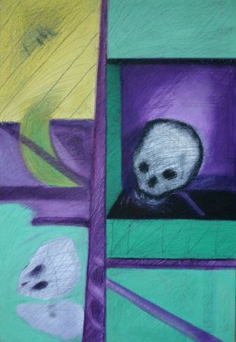 Stillleben mit Totenköpfen, 2006, Öl auf Karton, 21 x 16 cm