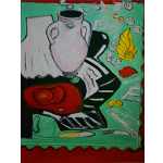 Stillleben mit Kopf und Kinderzeichnung, 2008, Öl auf Leinwand, 80 x 60 cm