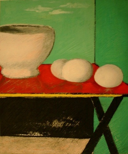 Stillleben mit Eiern und Salat, 2009, Öl auf Karton, 30 x 42 cm