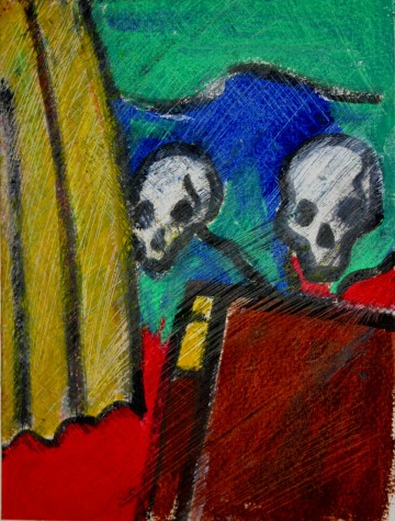 Still life with skulls, 2006, oil on cardboard, 21 x 16 cm